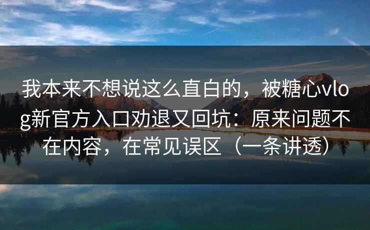我本来不想说这么直白的,被糖心vlog新官方入口劝退又回坑:原来问题不在内容,在常见误区(一条讲透)