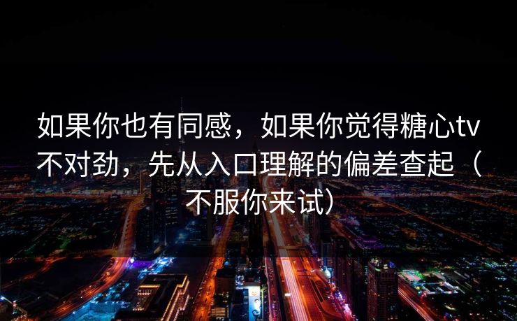如果你也有同感,如果你觉得糖心tv不对劲,先从入口理解的偏差查起(不服你来试)